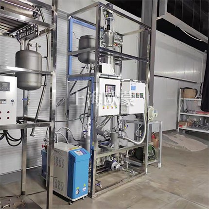 為了優(yōu)化每個(gè)工藝過(guò)程的操作參數(shù),優(yōu)化蒸發(fā)器的性能,為大生產(chǎn)裝置獲得設(shè)計(jì)數(shù)據(jù),通常采用中試規(guī)模的短程蒸餾器進(jìn)行研究。設(shè)備由金屬質(zhì)制成(不銹鋼/TA2等)。因此,中試短程蒸餾器的蒸發(fā)面積更大,產(chǎn)量更高,不僅適合于中試研究,也非常適于小規(guī)模的生產(chǎn),處理量可達(dá)到4公斤到200公斤以上。